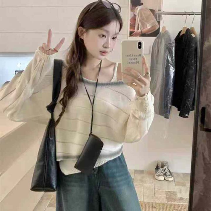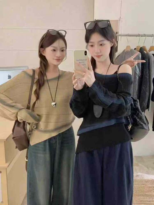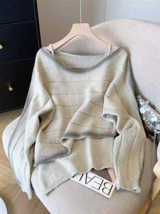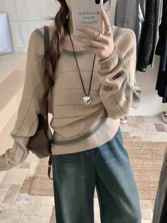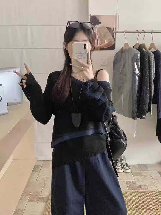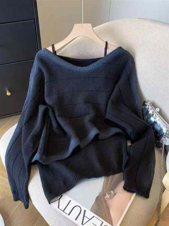 秋季新品美拉德色系宽松胖mm设计感长袖针织衫+冰丝吊...