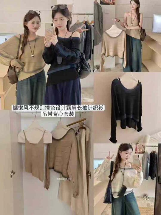 秋季新品美拉德色系宽松胖mm设计感长袖针织衫+冰丝吊带背心两件套,独立包装,均码面料柔软舒适,1145套,全清7.9元超低价秒杀!分货加一!