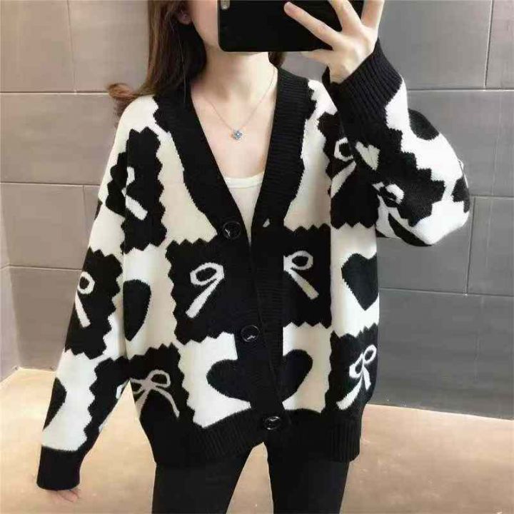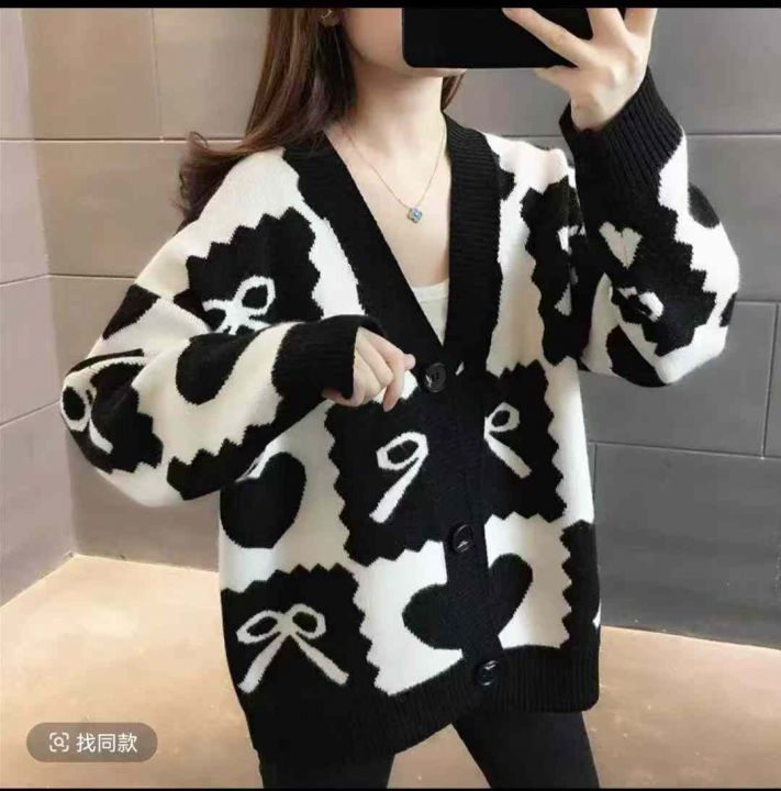 秋冬新款宽松慵懒风加厚包芯纱提花毛衣开衫,独立包装...