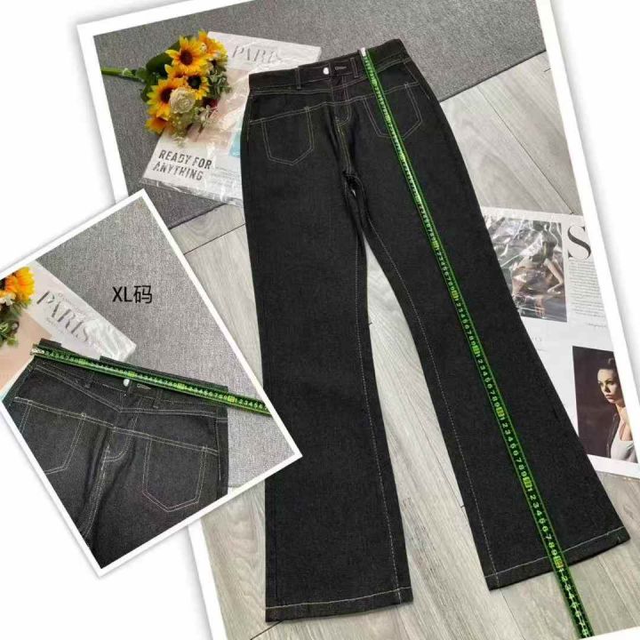 秋季新品洗水棉宽松百搭胖MM复古微喇叭牛仔长裤,独立包装带腰卡,码数XL--...