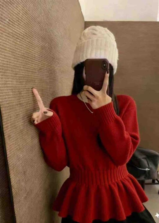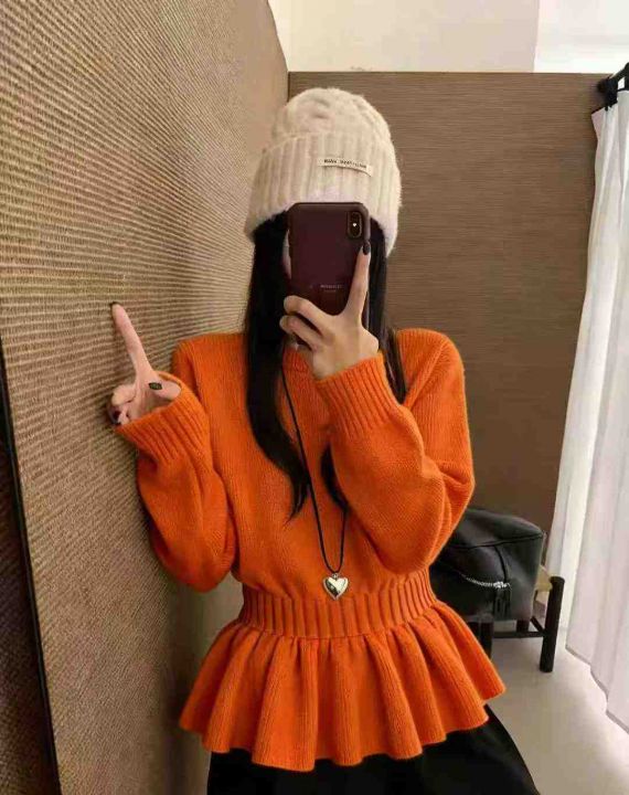 捡漏款,秋冬新款设计款甜美收腰显瘦荷叶摆包芯纱套头毛衣,独立包装,均码面料软糯厚实弹力大,82件,全清6.9元超低价秒杀!