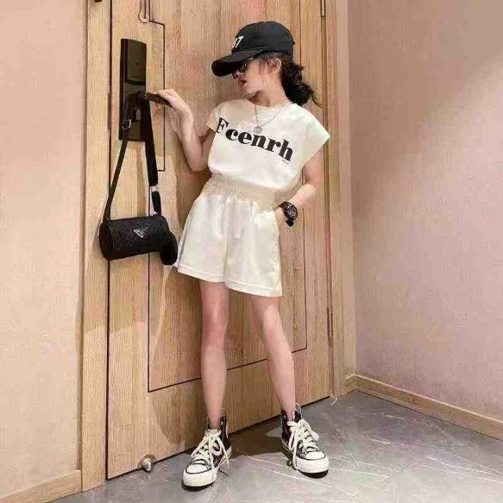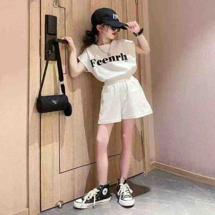 女童夏季套装韩版新款网红炸街中大童运动短袖T恤宽松...