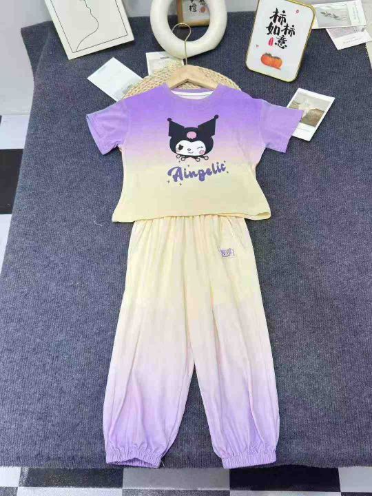 女童套装夏季潮款短袖小女孩宝宝休闲洋气两件套卡通夏装,数量405套,码数100-140,独立包装后领包边,全清8.8元