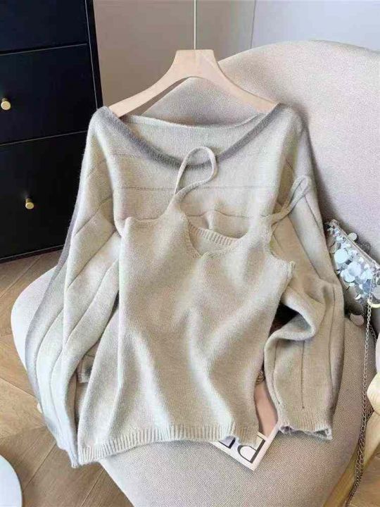 秋季新品美拉德色系宽松胖mm设计感长袖针织衫+冰丝吊带背心两件套,独立包装,均码面料柔软舒适,1145套,全清7.9元超低价秒杀!分货加一!