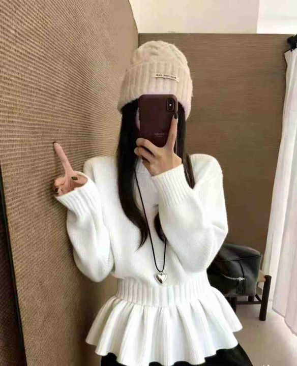 捡漏款,秋冬新款设计款甜美收腰显瘦荷叶摆包芯纱套头毛衣,独立包装,均码面料软糯厚实弹力大,82件,全清6.9元超低价秒杀!