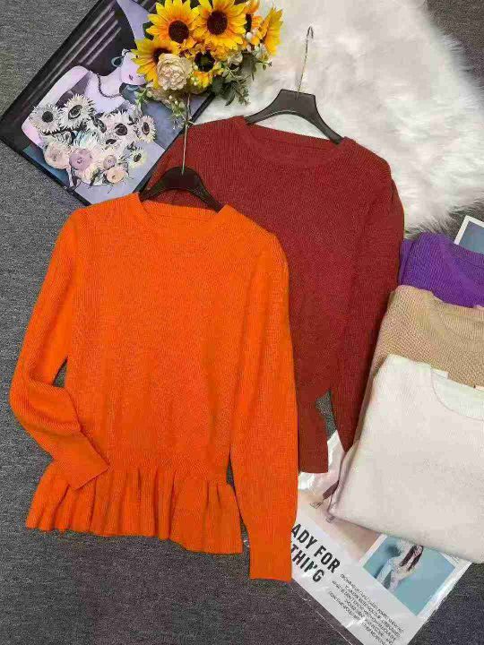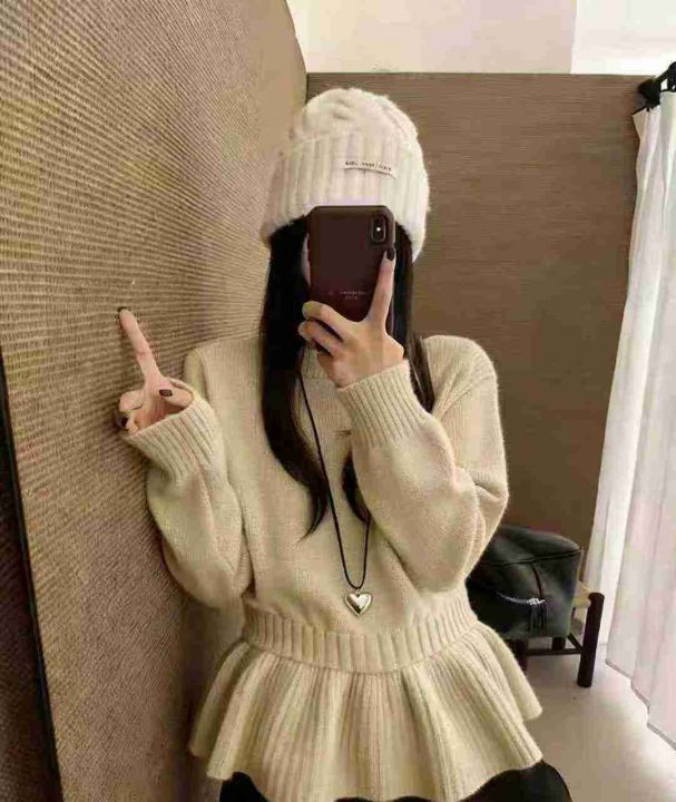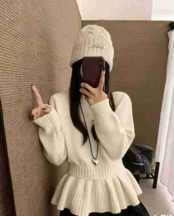 捡漏款,秋冬新款设计款甜美收腰显瘦荷叶摆包芯纱套头毛衣,独立包装,均码面料软糯厚实弹力大,82件,全清6.9元超低价秒杀!
