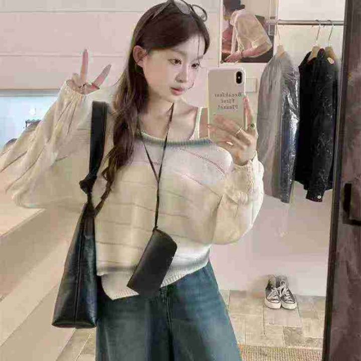 秋季新品美拉德色系宽松胖mm设计感长袖针织衫+冰丝吊...