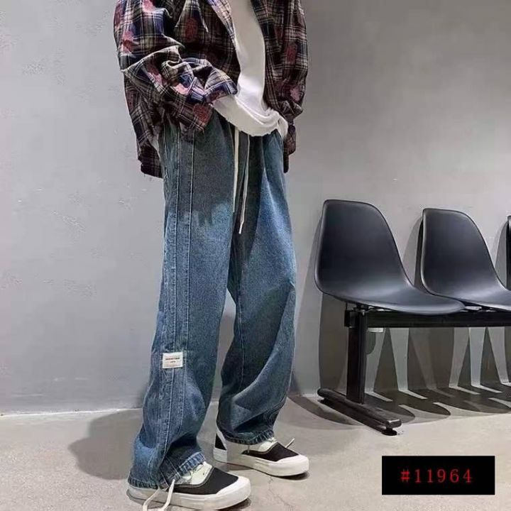 春秋新款宽松百搭松紧腰直筒牛仔裤,独立包装带吊牌,码数S- 3XL码,310件...