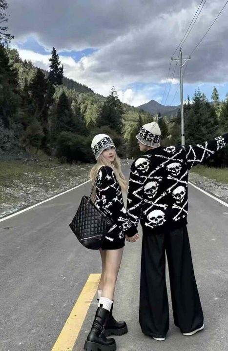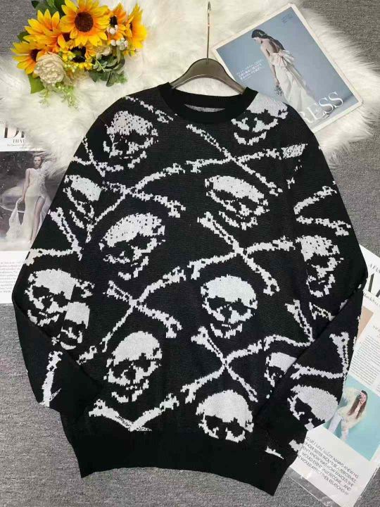 秋冬新款宽松慵懒风男女同款提花套头毛衣,独立包装,...
