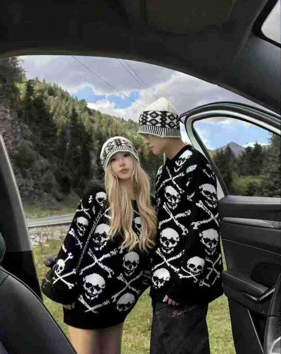 秋冬新款宽松慵懒风男女同款提花套头毛衣,独立包装,...