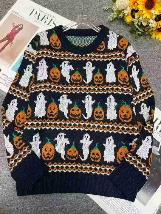秋冬新款男女同款宽松百搭提花北极绒套头毛衣,独立包...