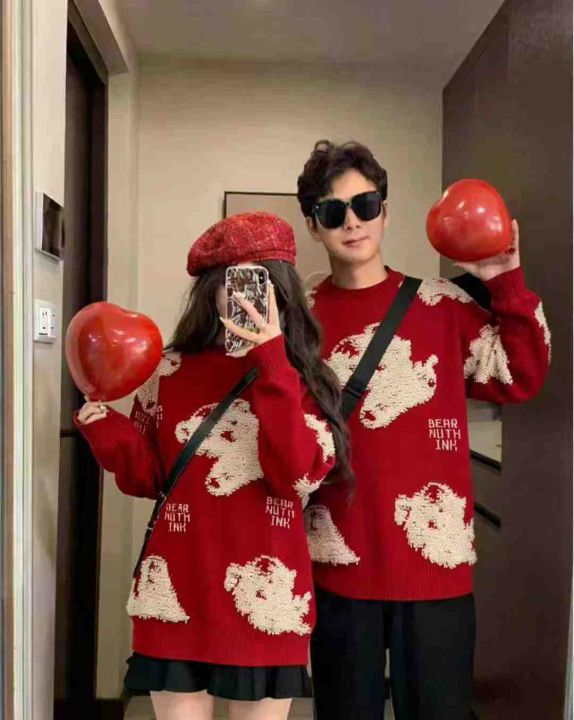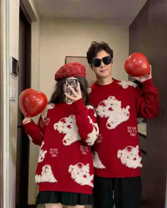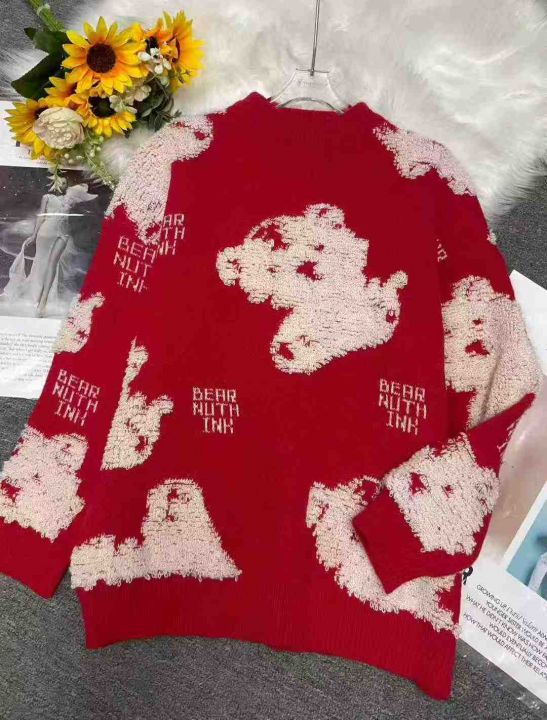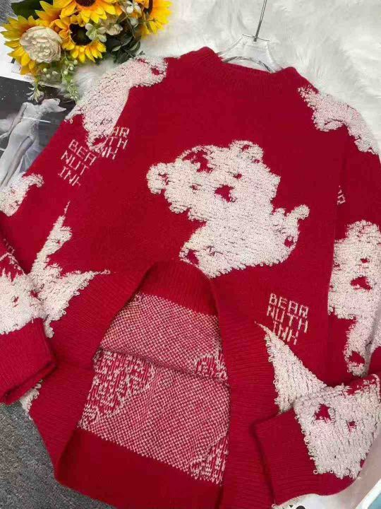 秋冬新款男女同款宽松百搭植绒卡通红色提花圆领套头毛衣,独立包装,均码面料软糯厚实,45件,全清9.9元超低价秒杀!