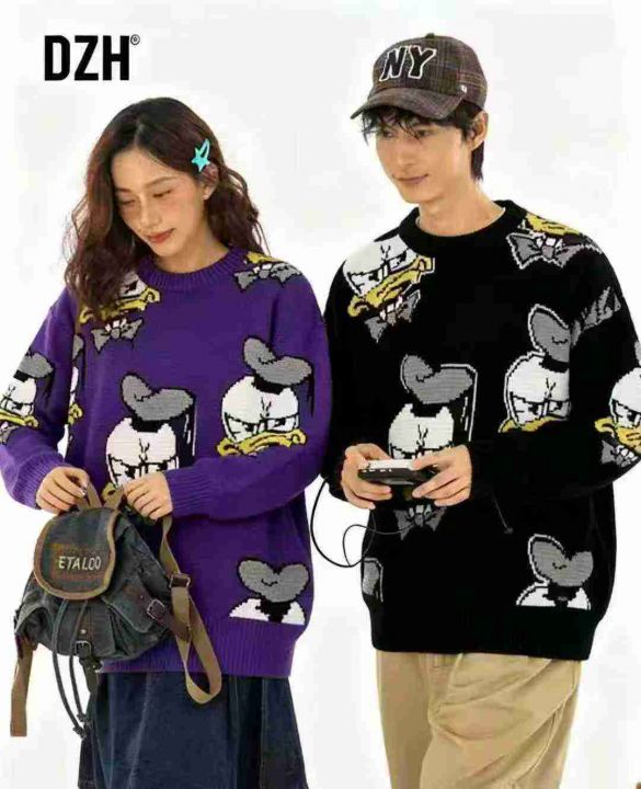秋冬新款宽松慵懒风卡通提花包芯纱套头毛衣,独立包装,245件,全清9.9元超低价秒杀!