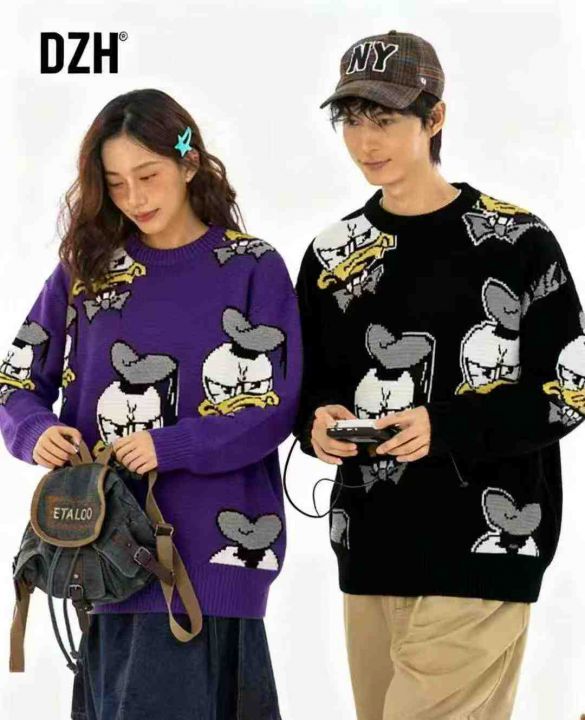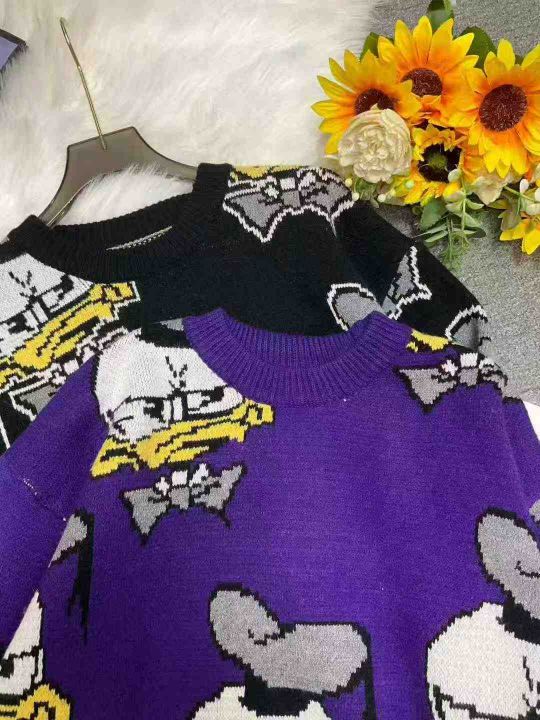 秋冬新款宽松慵懒风卡通提花包芯纱套头毛衣,独立包装,245件,全清9.9元超低价秒杀!