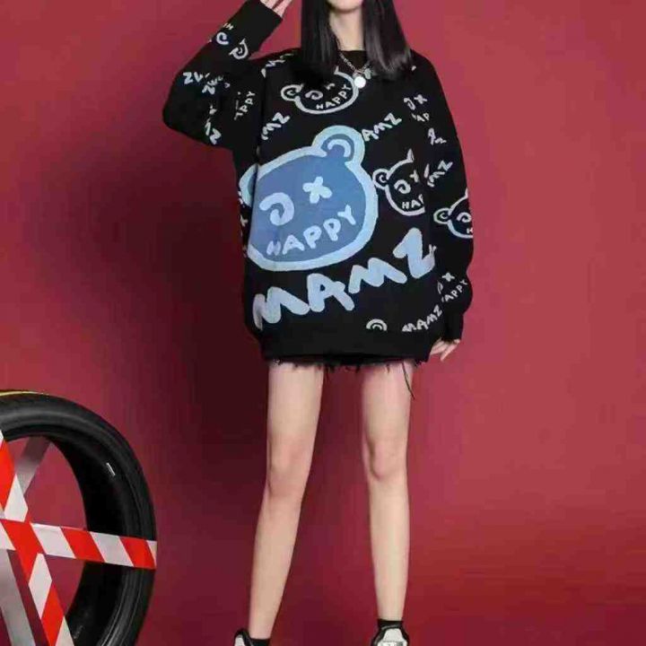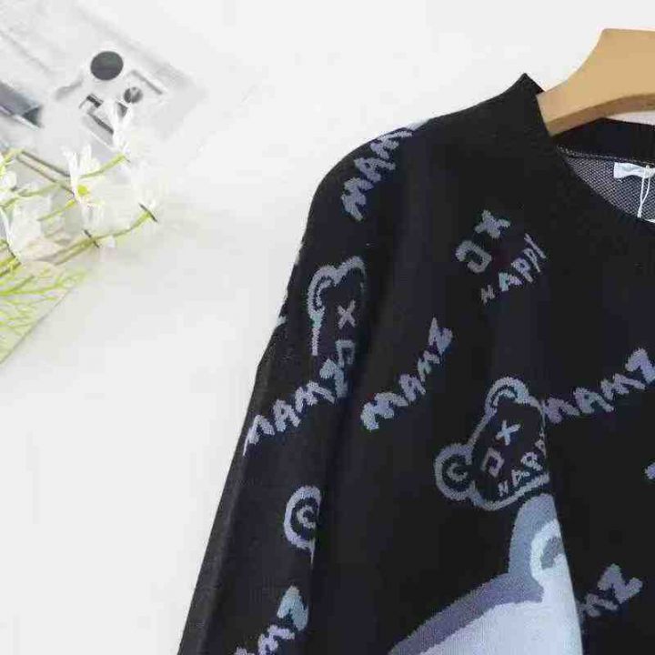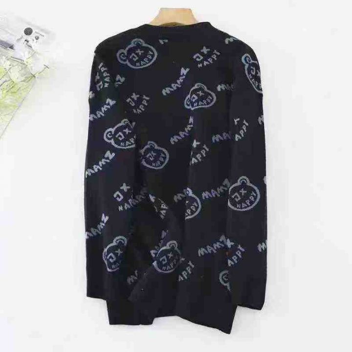 品牌剪标 独立包装,提花字母熊仔黑色流行时尚二毛条苞芯纱毛衣中长款宽松均码1300件左右,厚实手感好,全清16.9元分货+1[庆祝][庆祝][庆祝]
