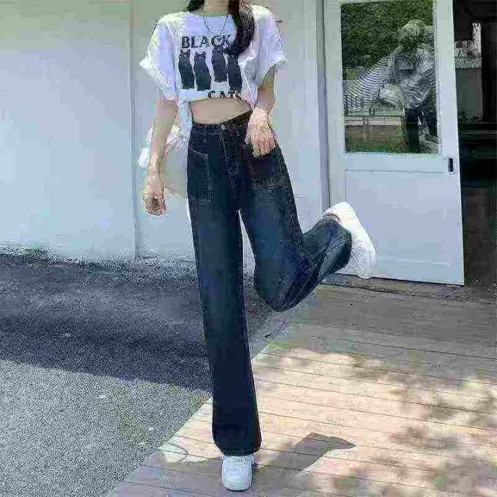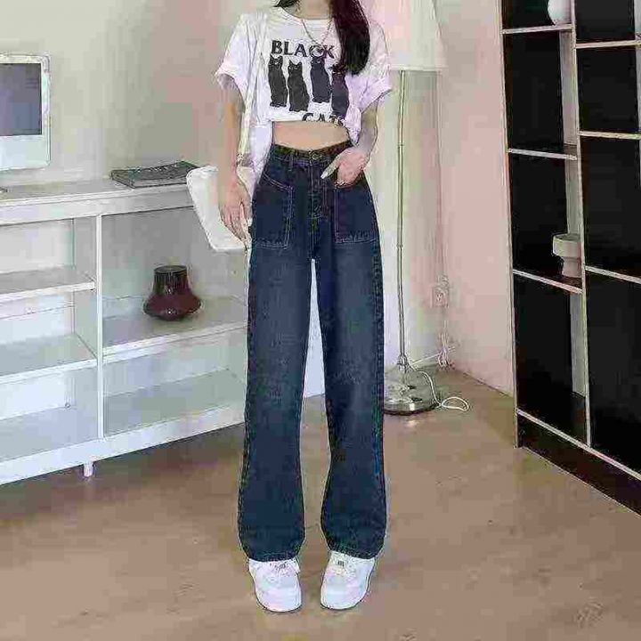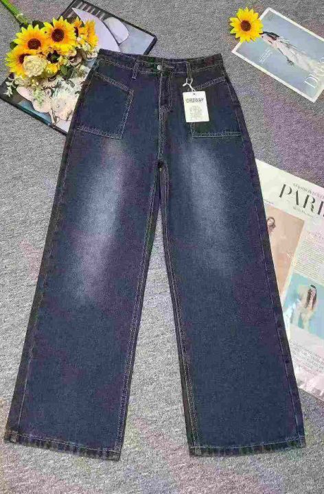 秋季新品洗水棉网红爆款直筒阔腿牛仔裤,独立包装带吊...