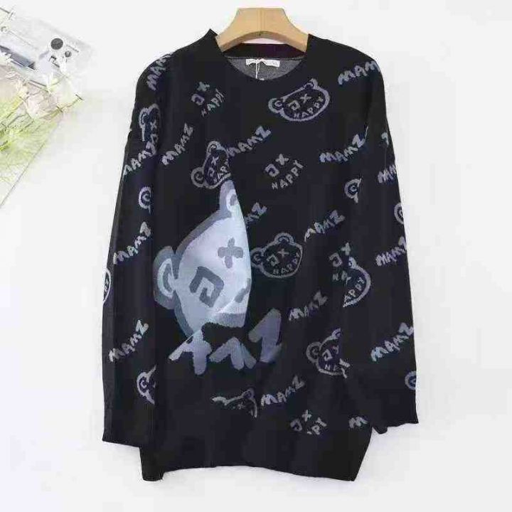 品牌剪标 独立包装,提花字母熊仔黑色流行时尚二毛条苞芯纱毛衣中长款宽松均码1300件左右,厚实手感好,全清16.9元分货+1[庆祝][庆祝][庆祝]