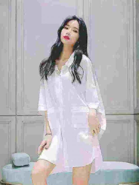 [月亮]:夏季薄款纯欲男友风家居裙白衬衫