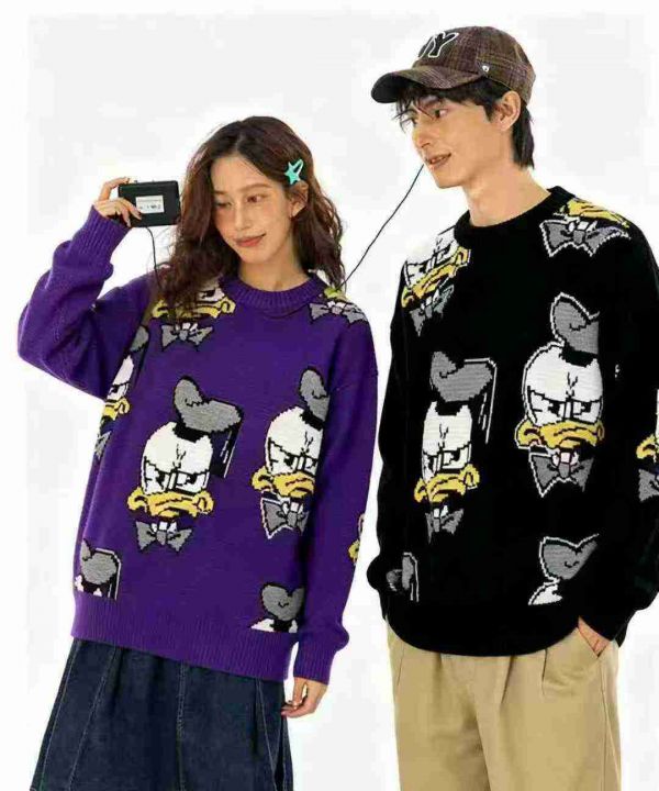 秋冬新款宽松慵懒风卡通提花包芯纱套头毛衣,独立包装,245件,全清9.9元超低价秒杀!