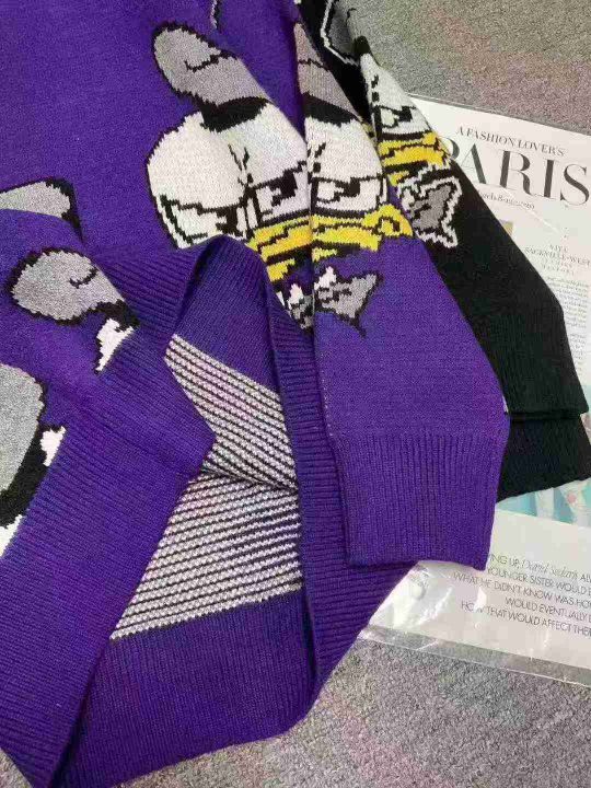 秋冬新款宽松慵懒风卡通提花包芯纱套头毛衣,独立包装...