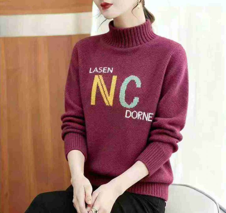 秋冬新款高品质雪尼尔+水貂绒半高领加厚洋气百搭提花...
