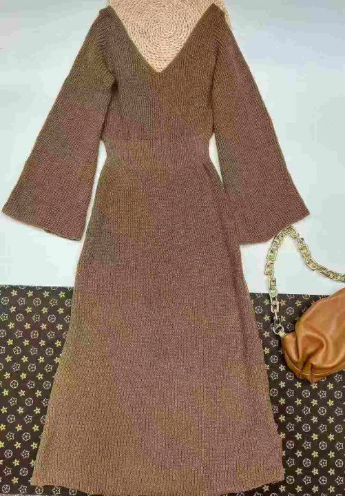针织大长裙,长度到脚踝位置,数量364件,单款咖啡色,网络图供参考大概款式,独立包装,分货➕1