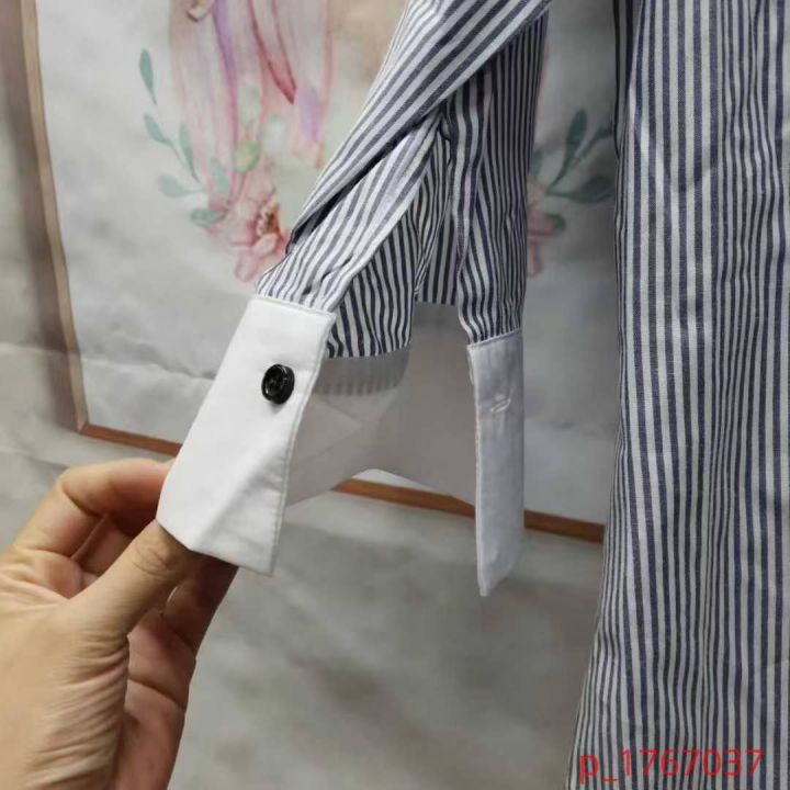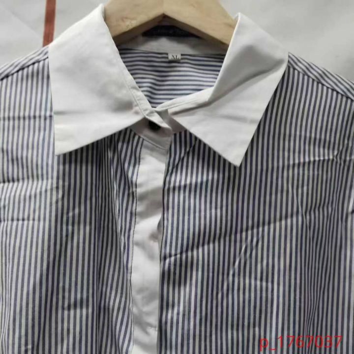 编号:[30071] ¥2.5元 女装/女士服装 上衣 衬衫/长袖小衫/设计感 衬衣 新款条纹修身修身休闲气质条纹正装衬衣s-xl独立包装白色位置有黄点2.5 yuan flash sale, new striped slim casual formal shirt, independent packaging, white with yellow spots, size s-xl, quantity 135 pieces.2.5 يوان عرض خاطف، قميص رسمي جديد مخطّط نحيف للمناسبات، تغليف مستقل، أبيض مع بقع صفراء، مقاسات s-xl، الكمية 135 قطعة. 库存:135