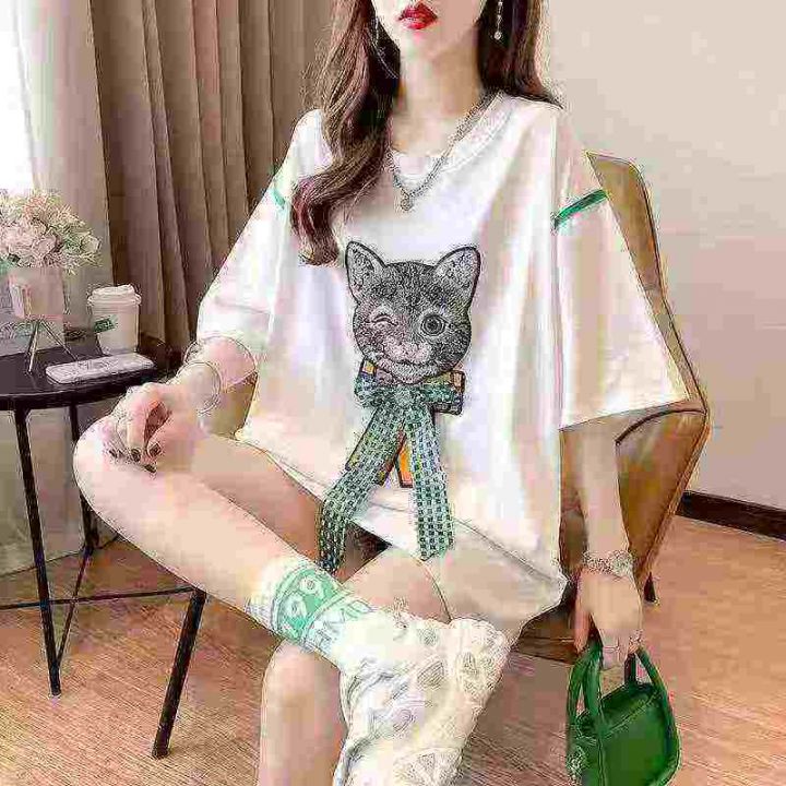 天猫在售款110件左右高品质夏季女装宽松大版T恤,重工刺绣工艺,码数M-2XL,后领包边到肩,单款两色,独立包装