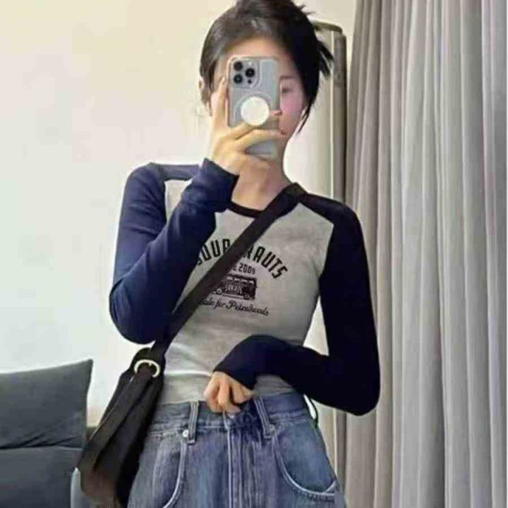 全清价6.5撞色插肩长袖修身显瘦螺纹辣妹T恤,独立包装,码数1-5码,高弹,...