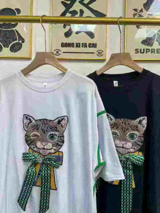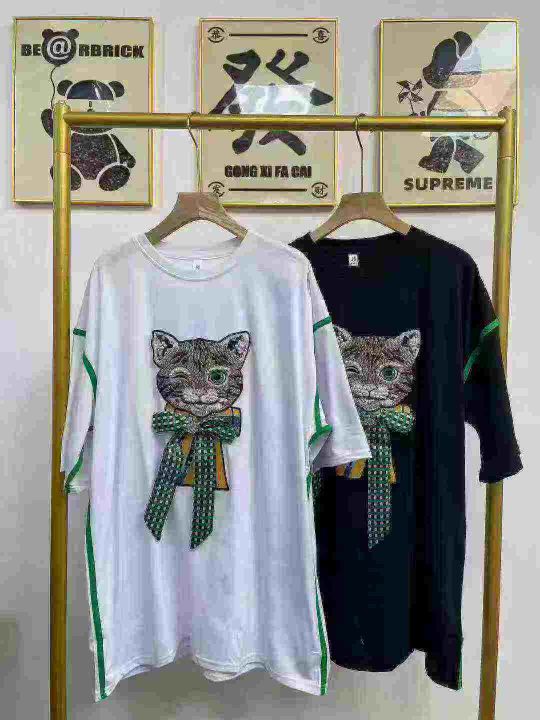 天猫在售款110件左右高品质夏季女装宽松大版T恤,重工刺绣工艺,码数M-2XL,后领包边到肩,单款两色,独立包装