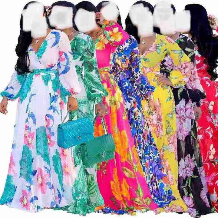 欧美大码连衣裙大长裙系列款 颜色花型多样 S-5XL原包装 还剩8000件左右 仓库现货