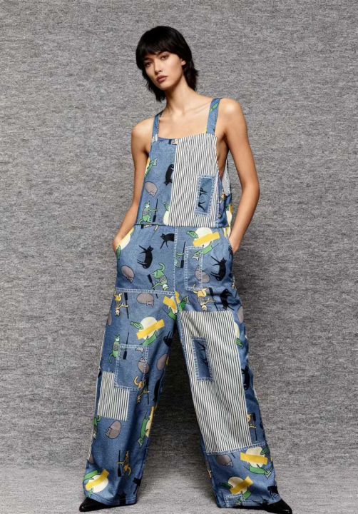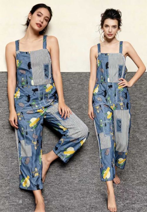 春秋时尚百搭减龄个性卡通印花背带裤,单款单色,有独...