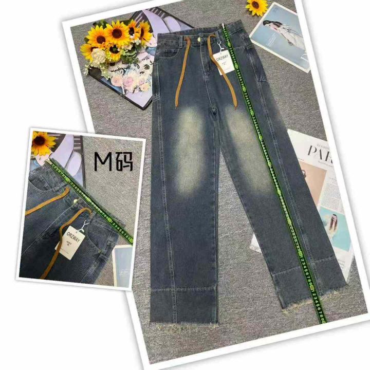 秋季新品设计款洗水棉网红爆款直筒阔腿遮肉显瘦抽绳牛仔裤,独立包装带吊牌,码数XS-L码,620件,全清11.8元超低价秒杀!分货加一!