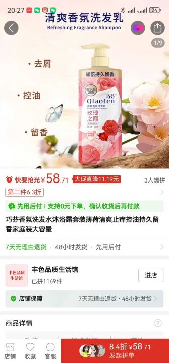 巧芬香氛洗发水沐浴露套装薄荷清爽止痒控油持久留香家...