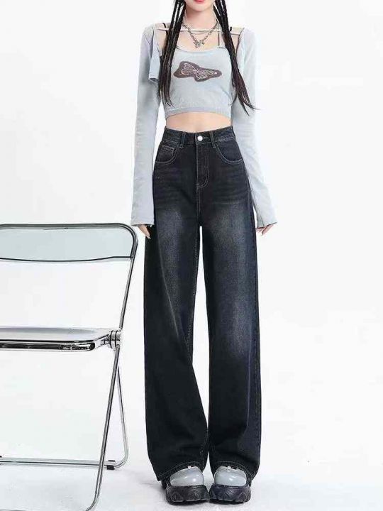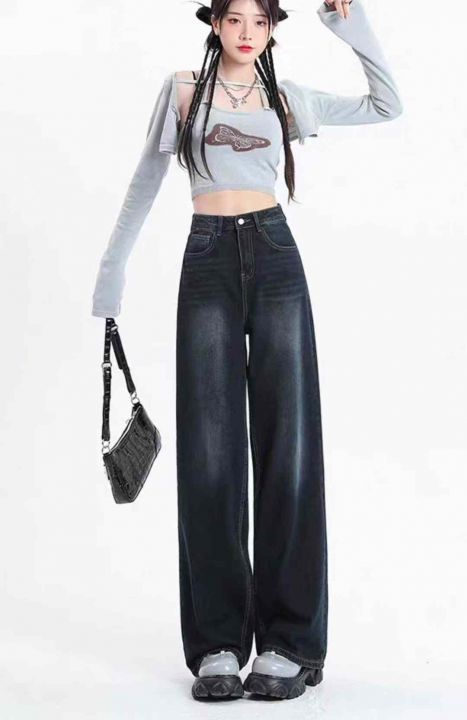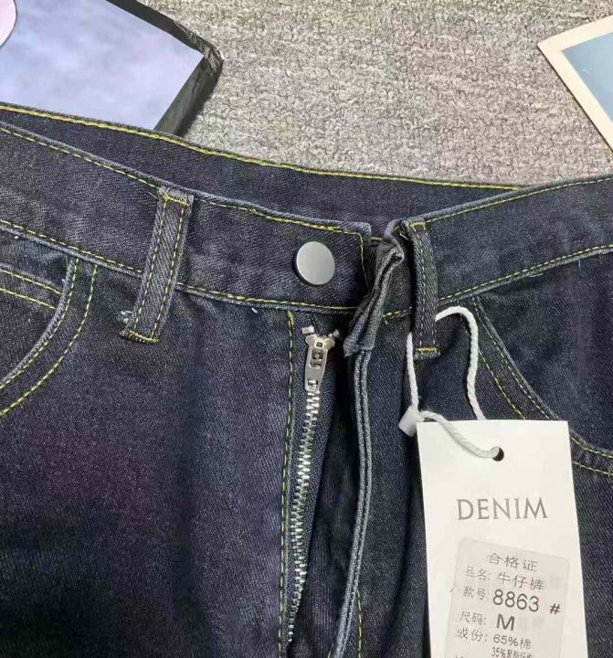 秋冬新款高品质洗水棉牛仔直筒阔腿裤,独立包装带吊牌...