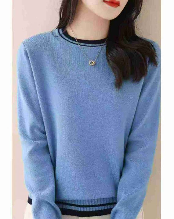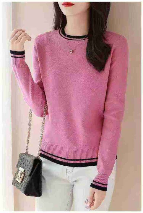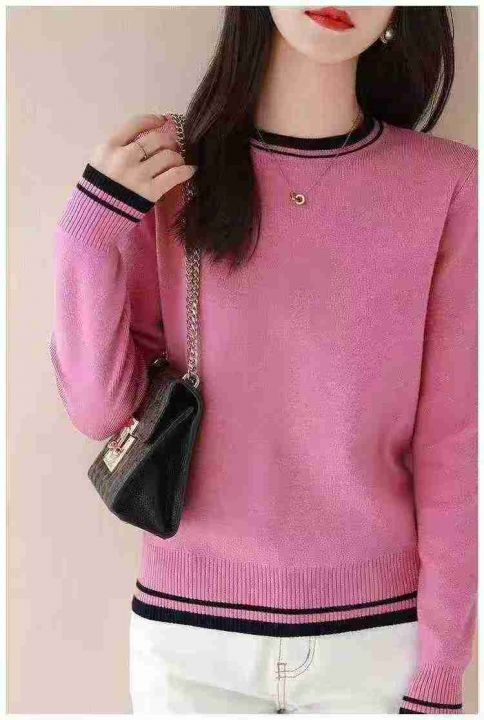 秋季新品撞色法师时尚圆领长袖针织套头毛衣,独立包装,均码面料柔软舒适弹力大,95件,全清6.9元超低价秒杀!