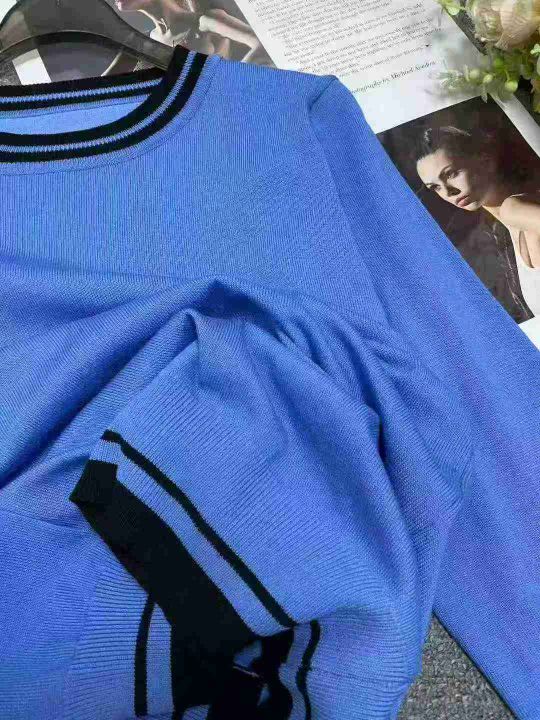秋季新品撞色法师时尚圆领长袖针织套头毛衣,独立包装...