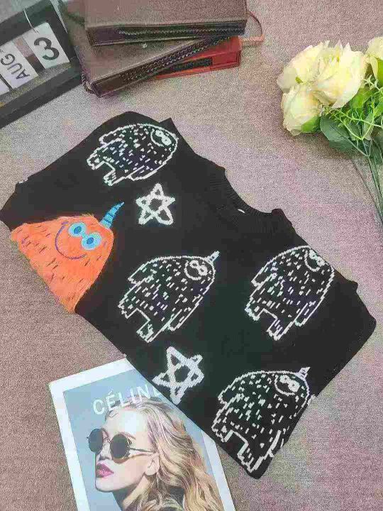 韩国东大门芝麻街套头针织毛衣卡通图案洋气宽松显瘦大版毛衣,独立包装,均...