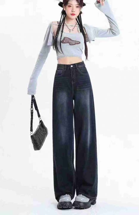 秋冬新款高品质洗水棉牛仔直筒阔腿裤,独立包装带吊牌...