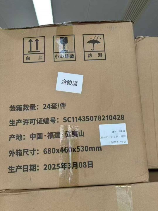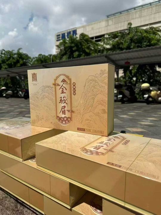 25年3月产高端品牌骏眉红茶3000盒,250克装(5克x50泡),高档包装,送礼自用都很合适。每包独立小包装,茶叶新鲜,花果香浓郁,茶汤金黄透亮,口感醇厚回甘,一箱24盒,一箱起发,一盒38块