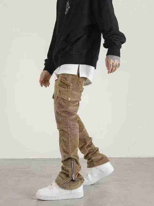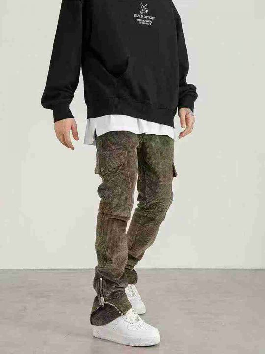 142条\'街复古做旧灯芯绒拉链修身工装裤国潮机能休闲...