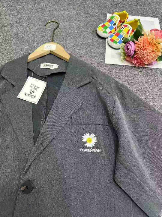 200件左右,港风刺绣刺绣小西装外套男夏季加肥加大码...