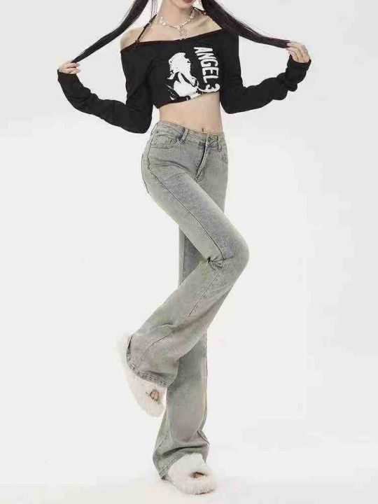秋冬新款高品质网红爆款高弹力复古喇叭牛仔裤,独立包...