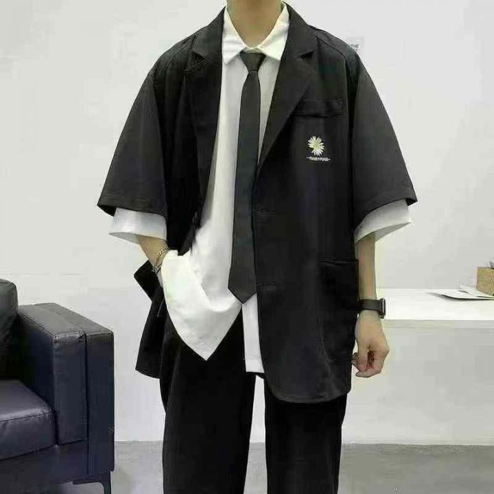 200件左右,港风刺绣刺绣小西装外套男夏季加肥加大码潮胖人宽松短袖西服,独立包装,码数M-2xL,全清6.8元,分货➕0.5