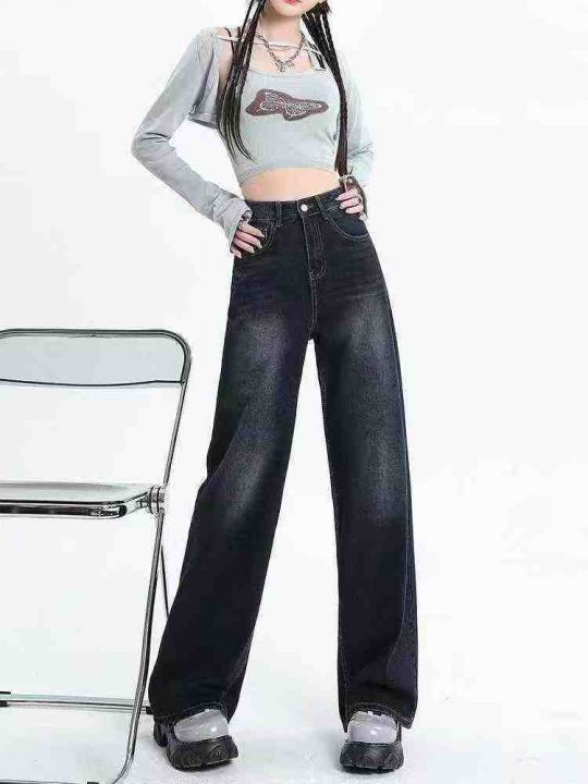 秋冬新款高品质洗水棉牛仔直筒阔腿裤,独立包装带吊牌...