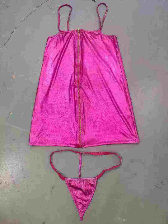 1.8秒杀[庆祝][庆祝] 两件套性感辣妹漆皮吊带弹力包臀连衣裙,独立包装,瑕疵串色(如图8)均码:穿到80-100斤左右,数量230套左右