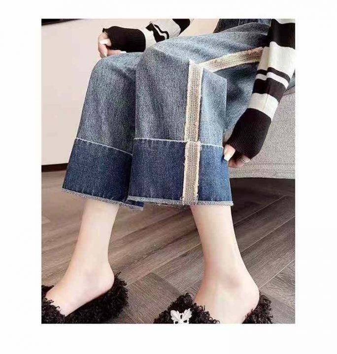 秋冬新款高品质女装洗水棉设计款窄版直筒阔腿牛仔裤,...