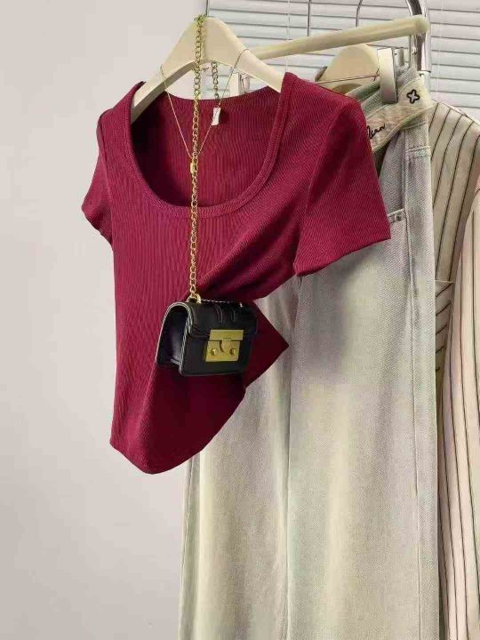 辣妹短袖T恤夏季正肩新款修身显瘦短款上衣,独立包装,货品干净,模特供参...