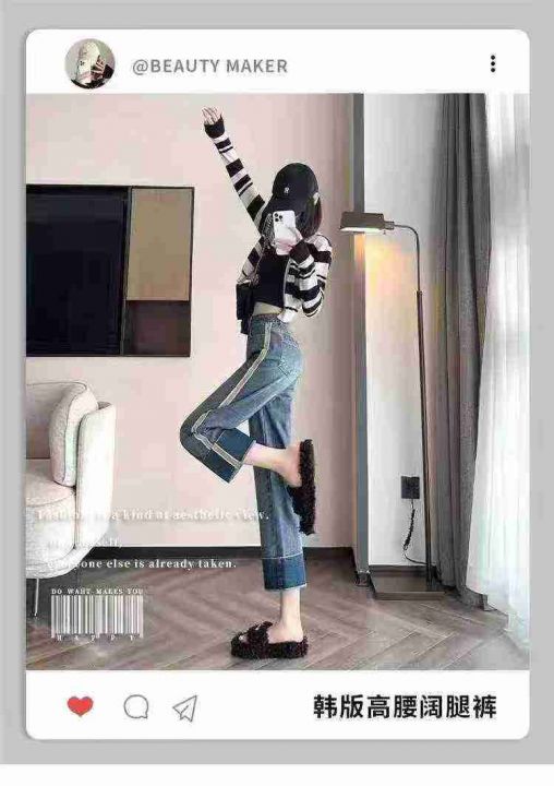 秋冬新款高品质女装洗水棉设计款窄版直筒阔腿牛仔裤,...