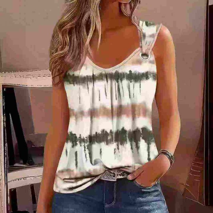 女士夏季休闲扎染印花无袖背心 , 数量140件,S-2XL码...